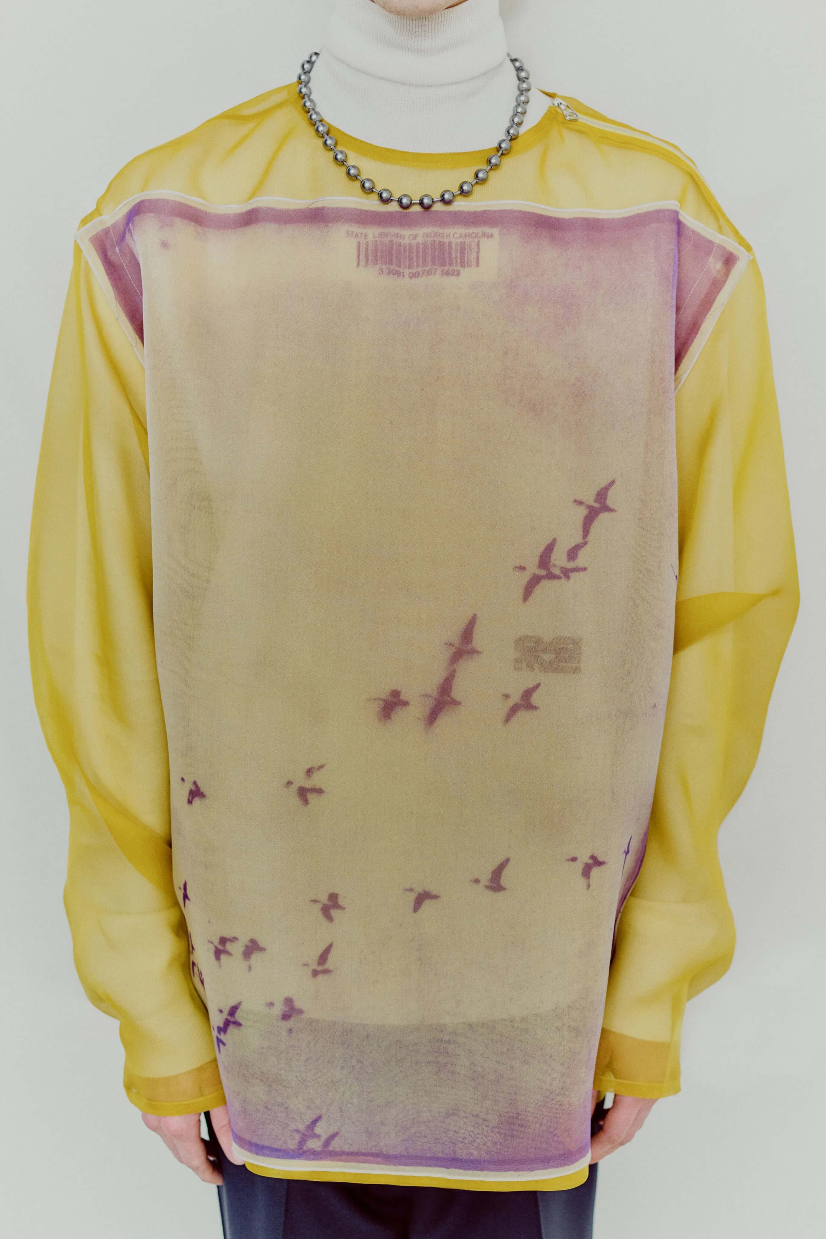 Collages and assemblages. In Rauschenberg’s vocabulary, ‘combines’. The idea of mixing materials, which Rauschenberg gained through his experience in his first year at the legendary black mountain college, under the guidance of Josef Albers. This idea is often at the root of design: finding the correct balance and vibration between two different materials, colors, or techniques, and was the initial starting point for the Fall/Winter 2021 collection. Mixed materials take the form of organza panels applied to sharp Japanese wool or cotton poplin overshirts, chunky knit collars attached to wool coats, and heavy metal hardware cutting through tailoring, shirting, footwear, and accessories.