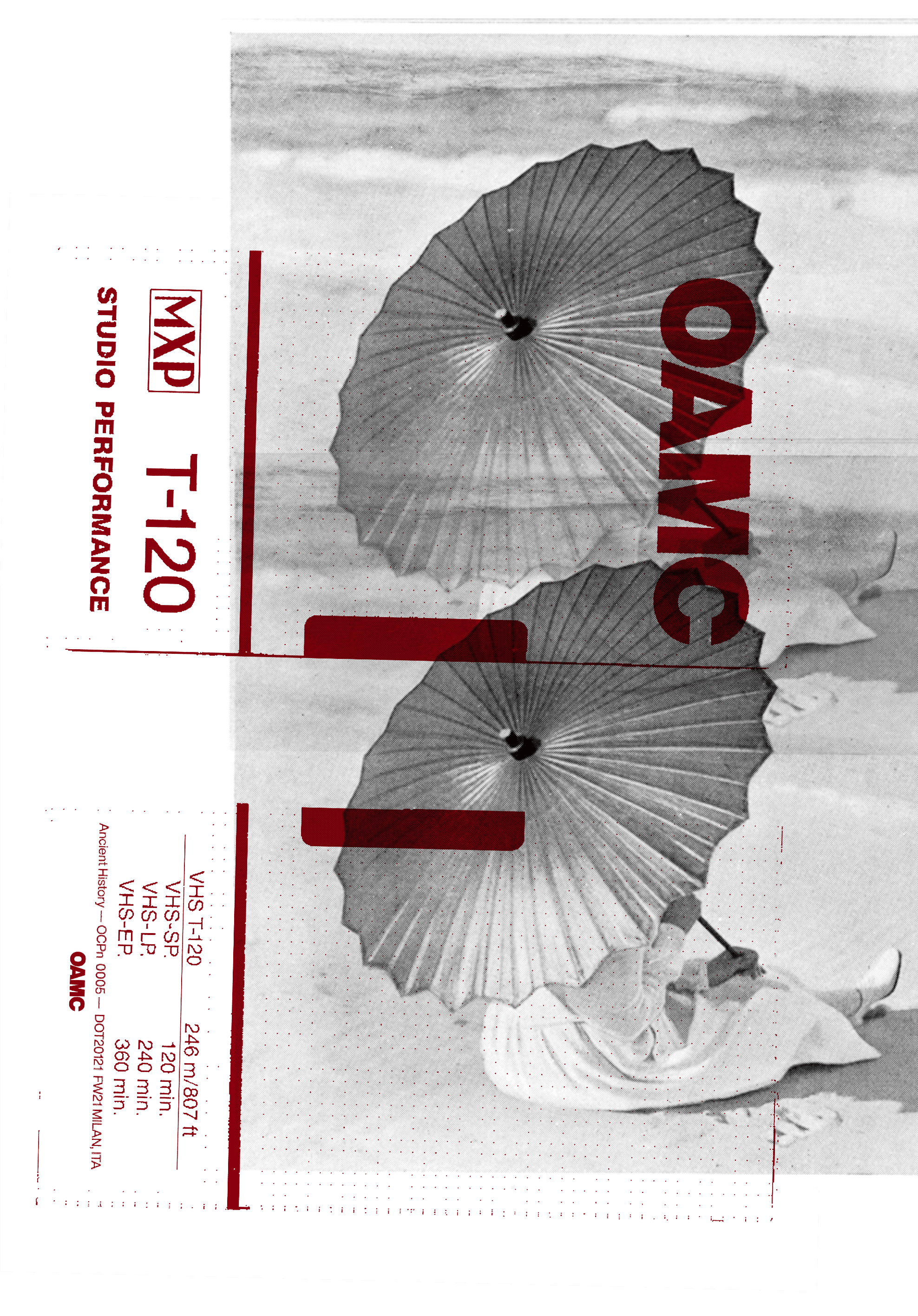 Layering is also important. Both in terms of building the silhouette, but also to provide a visual depth by way of sheets of printed organza and printed graphic poplin. The illustrative work reflects a change in time and place through the exploration of how the recent past feels like ancient history. Cassettes, reel to reel machines, vhs tapes, tv static; all forms and aspects of technology which are not from too distant a past, but today feel distinctly ancient. The concept of time and recent history is one that casts a long shadow over how we all interact. The changes in the way we consume media, the revolutions that have taken place in the past 20 years, while present in the mind have now truly created ‘recent ancient’ history.